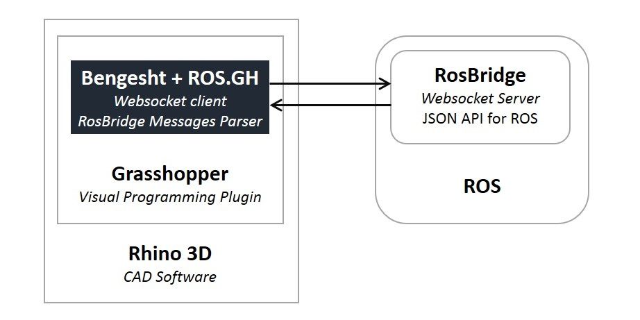 Last Wednesday, I presented Bengesht and ROS.GH as a communication mechanism between Grasshopper and ROS in 4th Robotics and ROS Meetup at ANYbotics AG, Zurich. Websocket components of Bengesht establish a bi-directional connection with RosBridge node and ROS.GH components can parse the exchanged JSON messages.